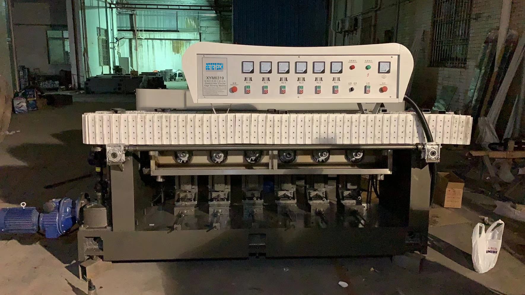 Model BYM6 is suitable for grinding peripheral edge such as pencil, OG, flat edge with arises, and bevel of different shape glass by equipping different kinds of wheels. It used shaping-grinder to be grinded and polished , and can grind high-quality glass. It provided with stepless speed variator regulating the speed of processing. Automatic or manual operation is subject to the customer’s selection, as well as the legend of grinding wheels.